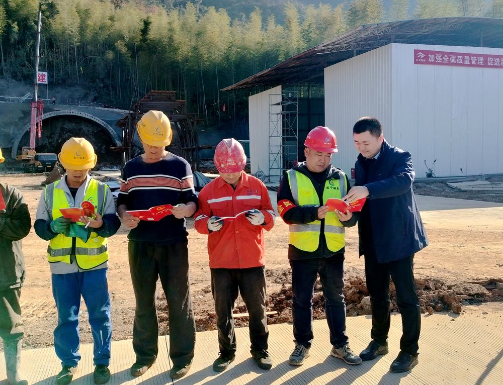二是送法到基層,普法零距離。公司邀請湖北眾和律師事務(wù)所詹書超律師普法團(tuán)隊深入咸寧桂花至汀泗高速公路GTTJ-3合同段項目施工現(xiàn)場,開展憲法宣傳活動。活動中,普法團(tuán)隊為項目部全體干部職工及農(nóng)民工朋友送去憲法讀本,面對面答疑解惑,用大家喜歡聽、愿意看的形式,用接地氣、有溫度的鮮活語言,講準(zhǔn)憲法、講透憲法、講活憲法,真正憲法知識融會貫通到現(xiàn)場每一位干部職工心中,進(jìn)一步提高廣大干部職工的法治意識法治素養(yǎng),為推進(jìn)依法治企,打造法治興達(dá),促進(jìn)合規(guī)經(jīng)營筑牢基礎(chǔ)。